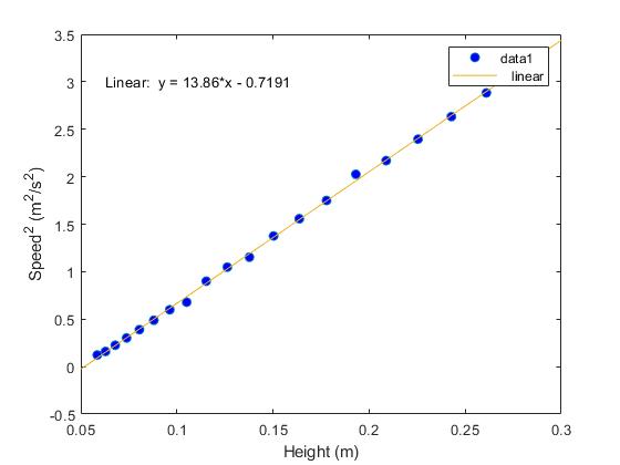 The value of R was found to be approximately 0.050m, with a gradient of the squared speed versus height plot of 14.3 m/s2. Followingly, we aimed to universalise these relationships by converting the variables into dimensionless quantities. The analysis revealed a linear relationship between the dimensionless speed, v, and the dimensionless time, t, confirming that the law holds true for any experiment, regardless of the apparatus used, despite the presence of viscosity and surface tension. | |